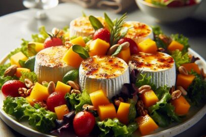 Warm goat’s cheese and mango salad