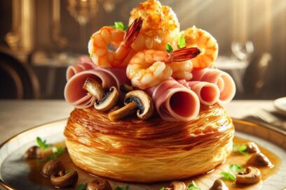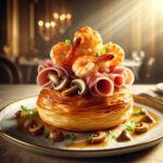 Hojaldre de gambas y setas con jamón 5J