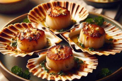Zamburiñas al horno con mantequilla de ajo y perejil