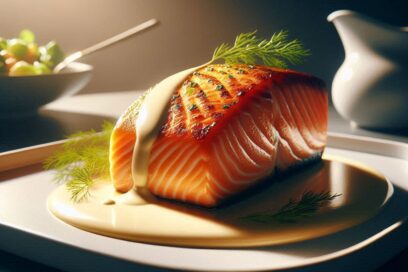 Pechuga de pollo de corral con su salsa de miel y mostaza